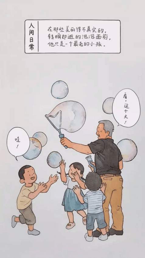 对一群小孩而言,一个能制造美丽泡沫的老爷爷,几乎等同于一个天使;可对爷爷而言,他只是一个最老的小孩……