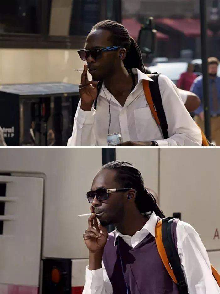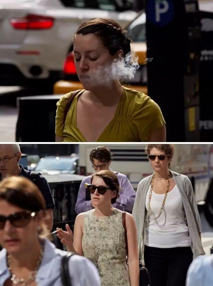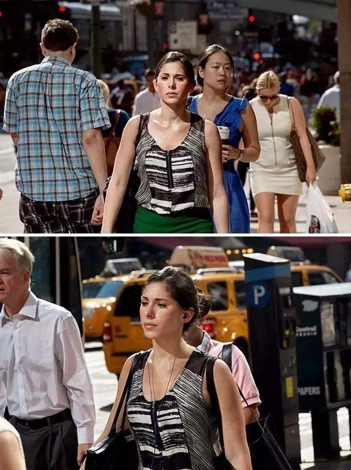 从发型、衣着、姿态、表情,甚至人们手中的咖啡、身边的同伴,都高度一致。