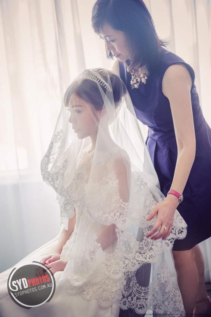 美国:在新娘穿戴上她的头纱之前,每个她身边的单身女性头顶都会碰到头纱,为了给她们找到另一半的好运;然后一个婚姻幸福的已婚女人会为新娘戴上头上的面纱,给她的婚姻带来好运。