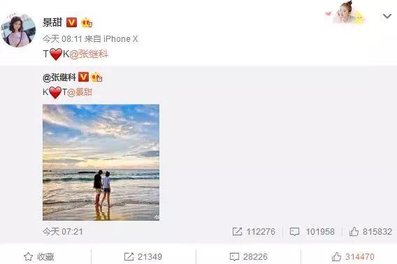 甜!张继科景甜发糖啦!!!