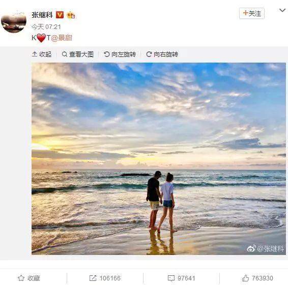 今天早晨7:21分钟,乒乓球名将张继科在微博正式公布了恋情,晒出了于景甜的海边牵手照,张继科在微博中写出“KT”的二人名字缩写,并用爱心将其连接,表达了自己对景甜的爱恋,消息一出,网友纷纷发来了祝福。张继科公开恋情的时间也正好是景甜的生日(7:21=7月21日),暗藏的心思难掩甜蜜。